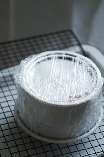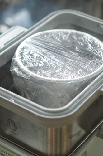 用保鲜膜包裹住模具(防止水汽影响米糕口感),放入蒸炖锅中。