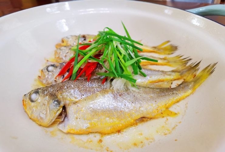 开盖,放入葱段,鱼身上浇淋生抽,关火焖1分钟,待有豉油葱香即可品尝。