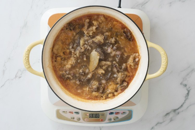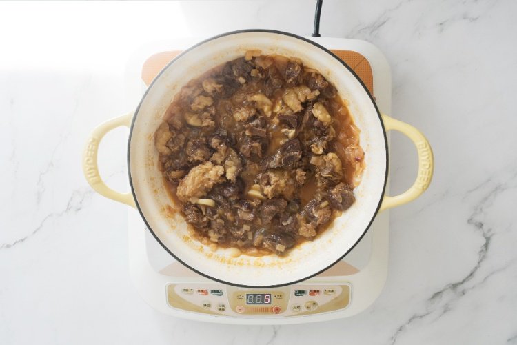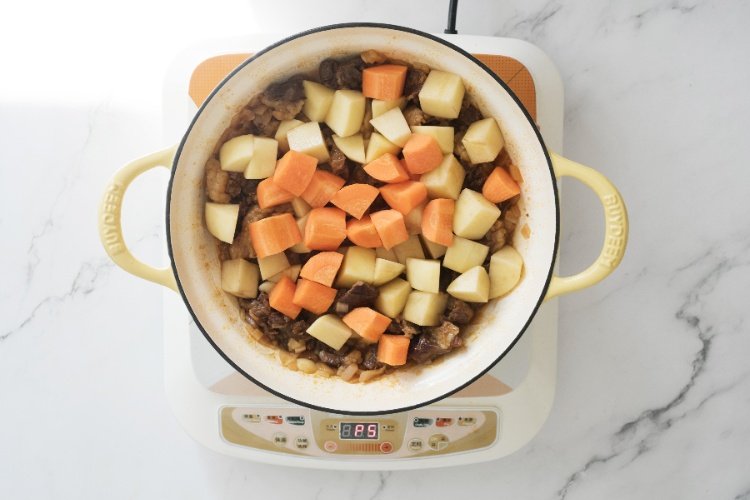 加入胡萝卜和土豆,小火炖煮30分钟。