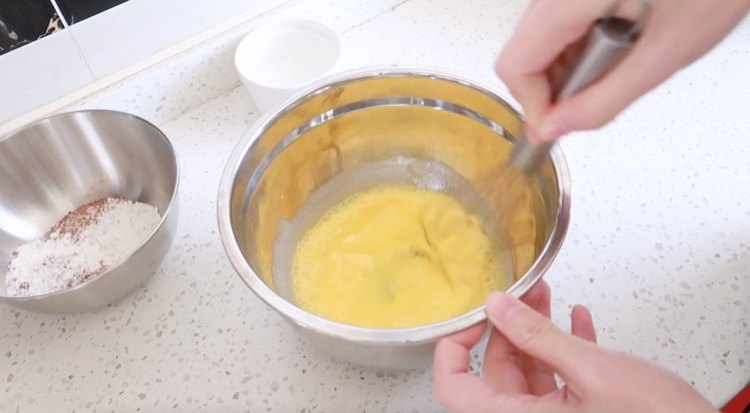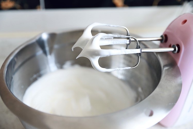 2、混合蛋黄和蛋白糊的时候不要画圈圈混合,容易消泡