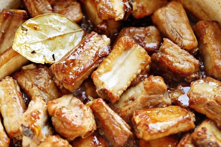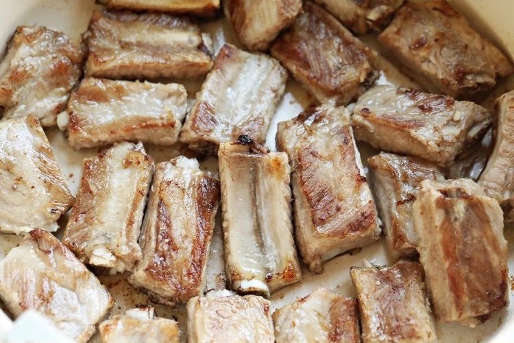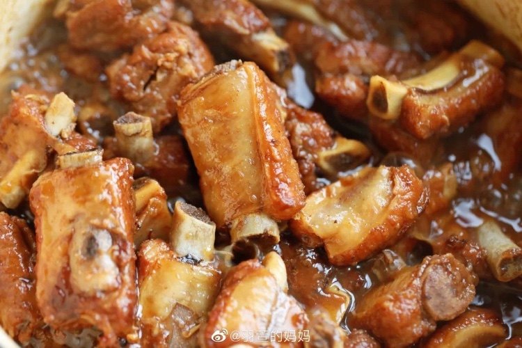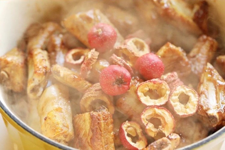 今天的糖醋排骨跟传统的做法会有一点的区别,不用油,用水炒糖色,另外额外加入了山楂干,排骨虽然吃不出什么山楂的味道,但是要比只用糖和醋烧的排骨要香得多。
