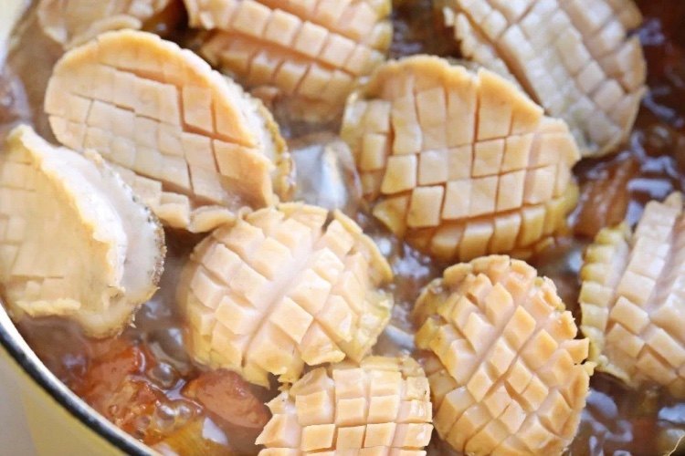 1、鲍鱼不耐煮,就只用小火焖煮10分钟,久了会咬不动。如果10分钟后锅里汤汁不浓稠,那么就把鲍鱼先夹出来,火调大把汤汁收好了再把鲍鱼放回去,五花肉多煮会儿是没关系的。