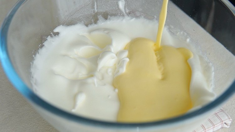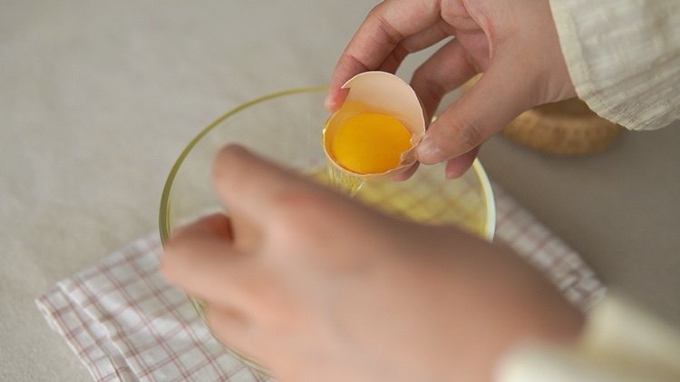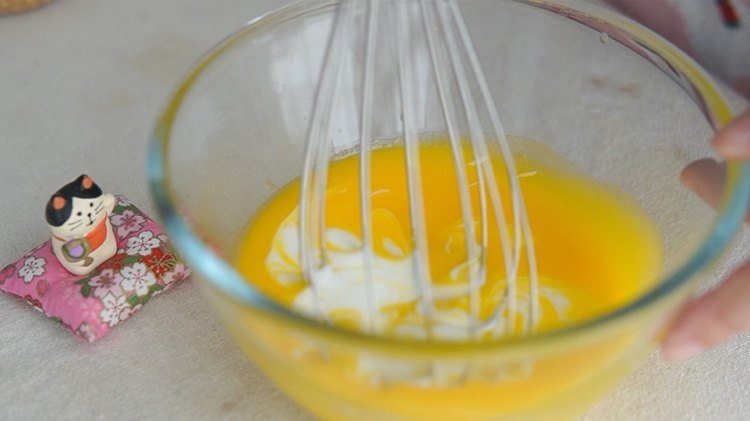 在3个蛋黄中,倒入25g玉米油,150g浓稠酸奶,搅拌均匀