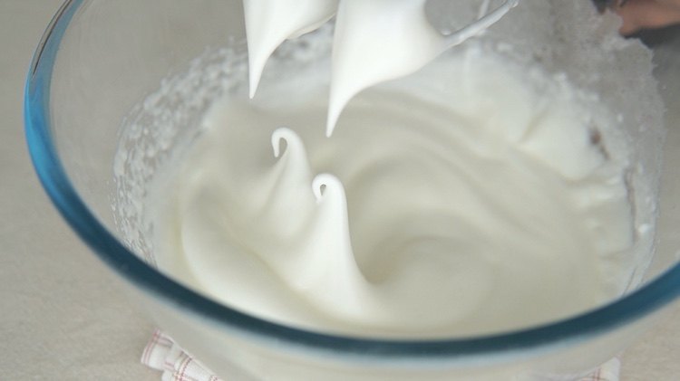 三份蛋清中滴入几滴柠檬汁,用打蛋器高速打发,期间分三次加入40g砂糖