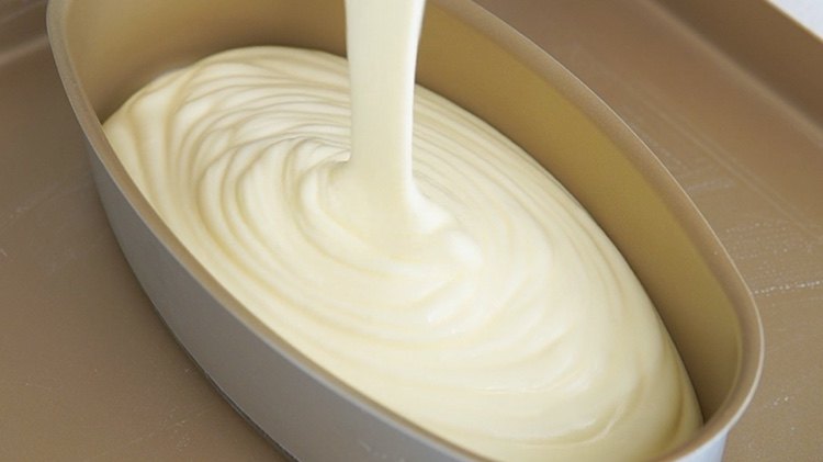 将翻拌好的蛋糕糊倒入椭圆芝士蛋糕模具中
