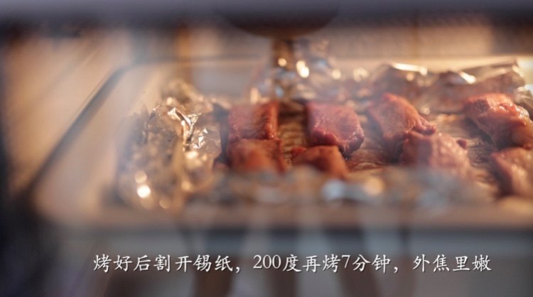 割开锡纸,烤箱200度再烤7分钟,外焦里嫩。