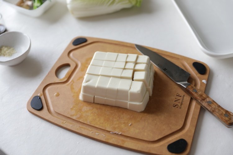 豆腐切成平均大小的四方块