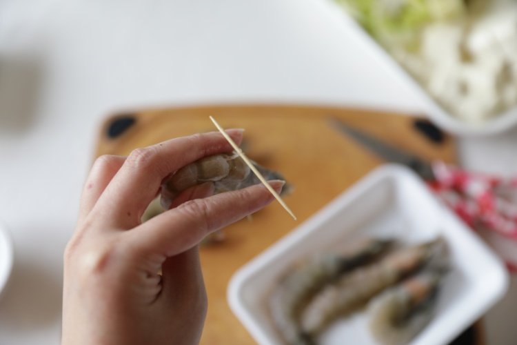 鲜虾挑去虾线
