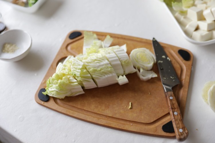 娃娃菜切掉根部斜切小块