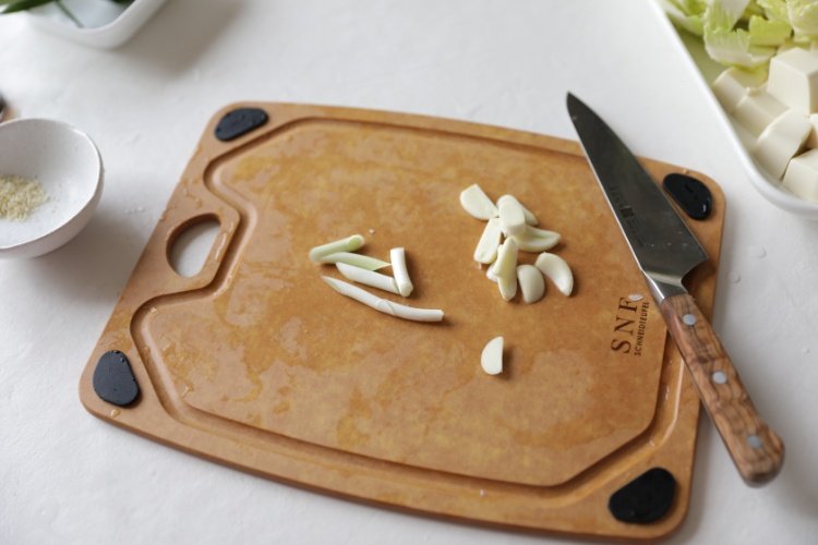 蒜剥皮切片,葱切段