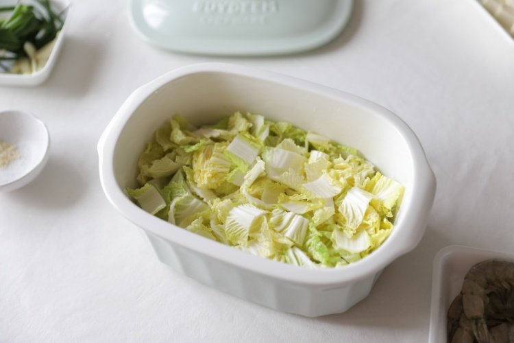 取出北鼎大炖盅,先铺一层娃娃菜