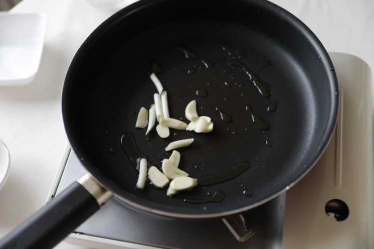 平底锅加热倒油,放入葱,蒜片爆香