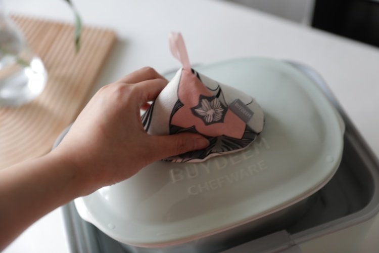 蒸好后带上小北帽防止烫手