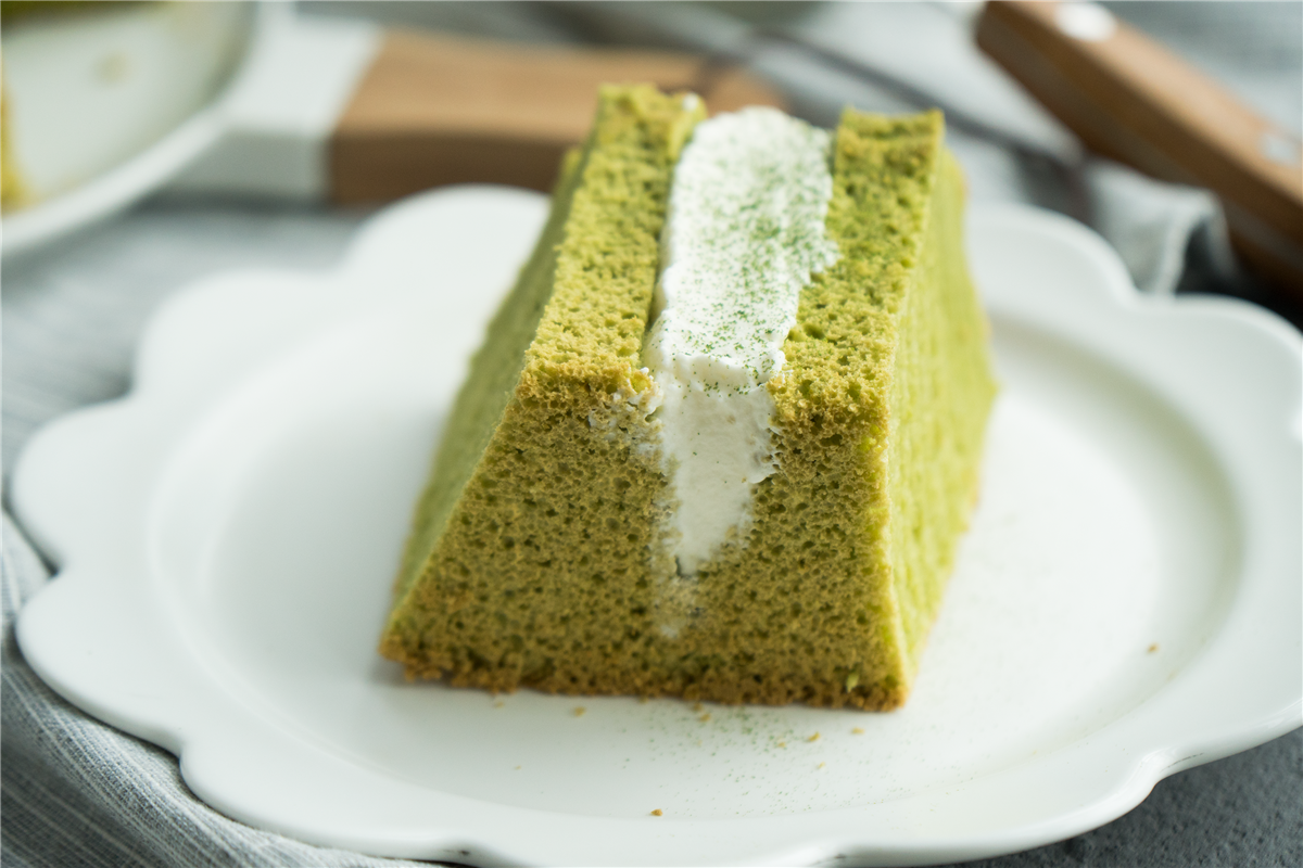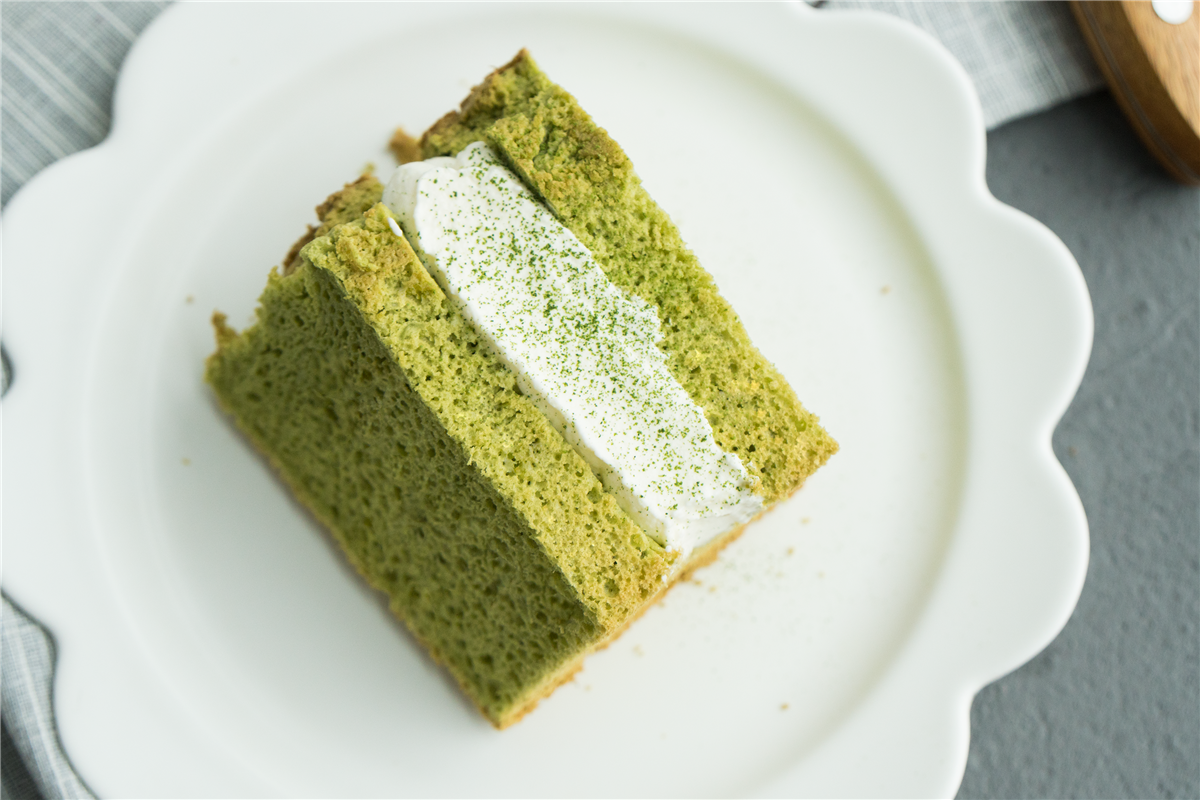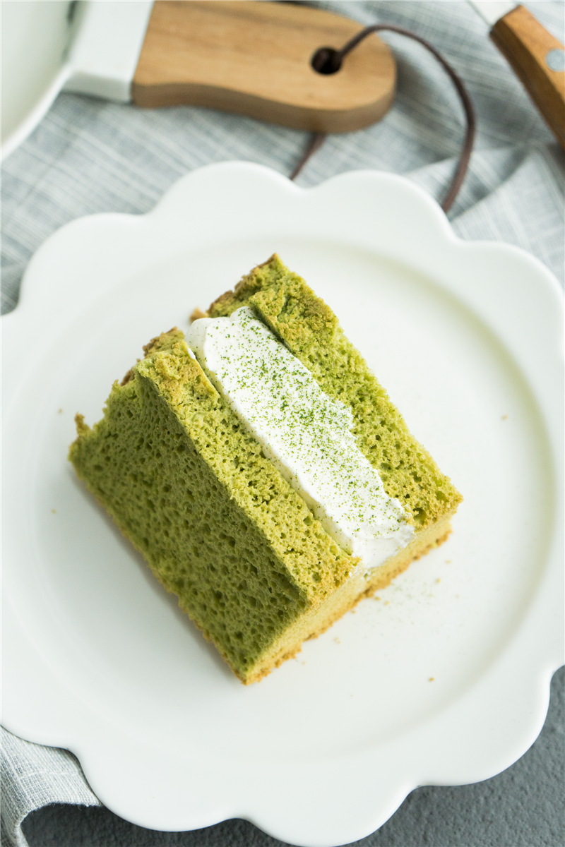 TIPS : 1、用常温鸡蛋,用常温鸡蛋,蛋白打发前也不要冷冻,否则翻拌过程中会让黄油凝固; 2、抹茶粉最好是加入热黄油中搅匀,可以借助黄油的热气激发抹茶本身浓郁的香味,如果是与低粉一起在最后加入,香气会大打折扣哦;也可以不加抹茶,就是原味黄油戚风; 3、不论室温高低,蛋黄糊最好是可以坐在热水上,防止黄油凝固; 4、黄油戚风的成品组织会比植物油稍粗一点,是均匀的中小号孔洞,如果有过大的孔洞那就是消泡过度喽。