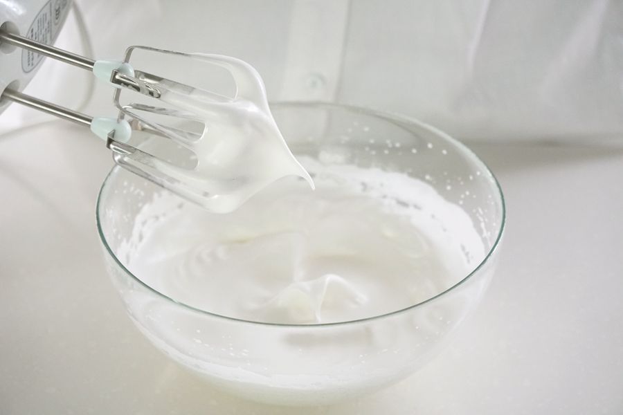 蛋白+细砂糖打发至小弯钩状态;