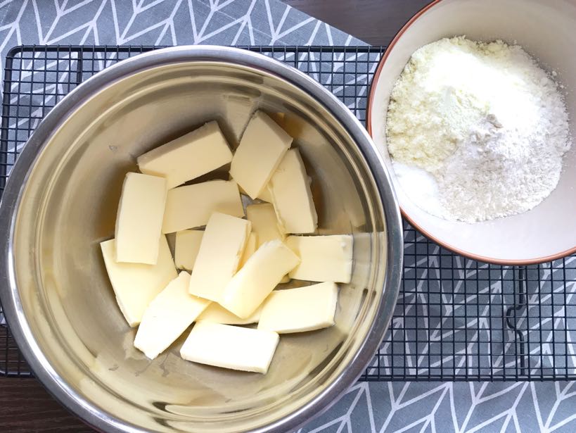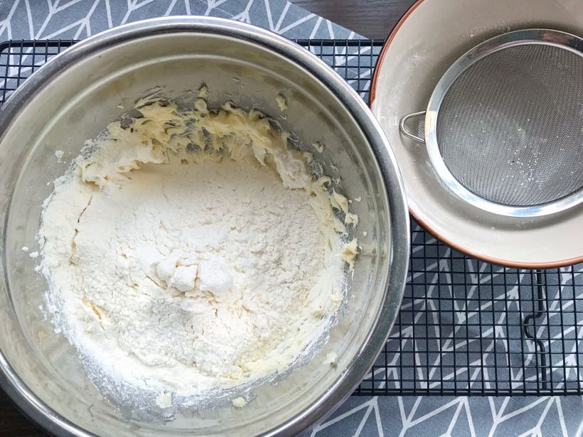 黄油加低筋面粉、奶粉、泡打粉,搅拌到膨大发白;