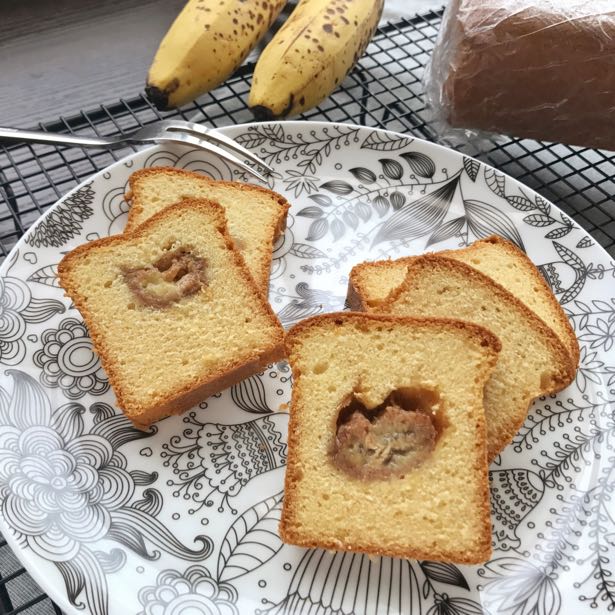 切开长这样!焦糖的微苦和香蕉很搭,连带蛋糕体也是软糯糯的,一拿出来就秒光!如果想让中间的香蕉夹心更成形,就一开始少煎一会儿,留点肉肉的口感也不错!