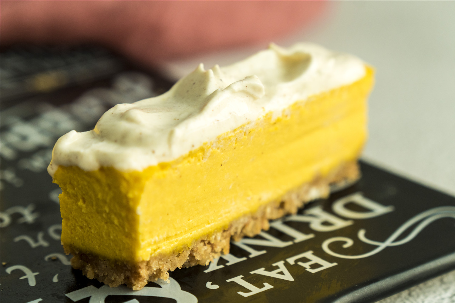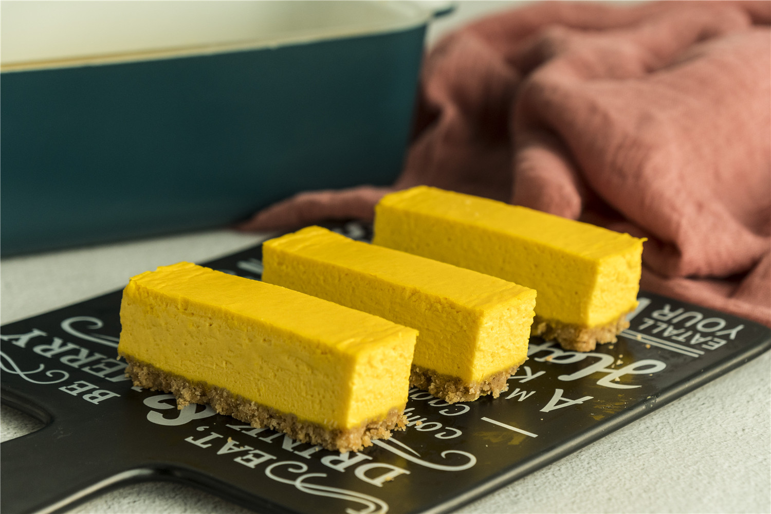 顺滑浓郁的黄金南瓜芝士条,吃一条就已经很满足!表面再抹点肉桂奶油,好吃!