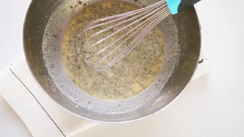 植物油+牛奶,搅拌均匀;