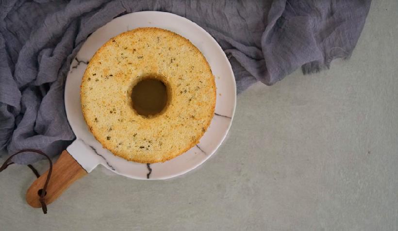 烤好后取出,第一时间在台面磕一下,把大部分热气震出,接着倒扣晾凉即可;我又得啰嗦一句:配方中我虽然用的是中空模,如果大家在家用圆模做,也是要倒扣晾凉的,记住啊!取出→磕一下→倒扣→完全晾凉→脱模。