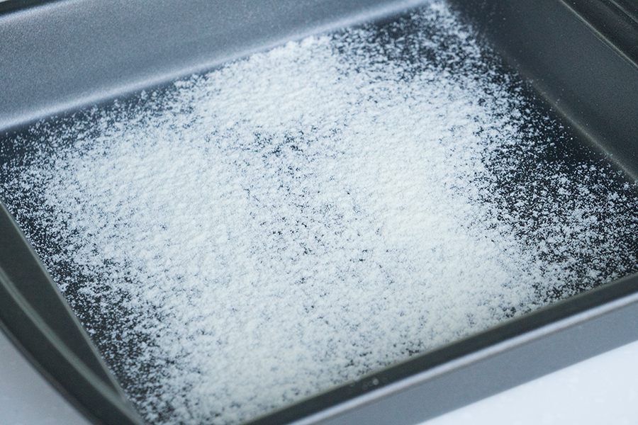 拌匀后转移至铺了奶粉的防粘烤盘里,整型,表面再撒一层奶粉就可以了!晾凉之后切小块吃~~