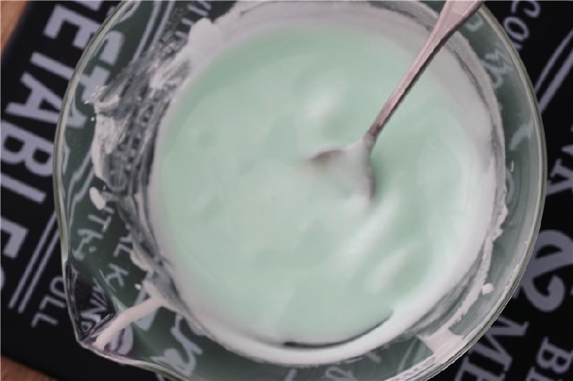 分出1/2的糖霜到小碗,用色素调成浅绿色;装进裱花袋里,并剪出2mm左右的小口。这里是为了做烤箱的绿色外壳。剩下的糖霜用保鲜膜贴着表面密封起来,不然很快就会变干;
