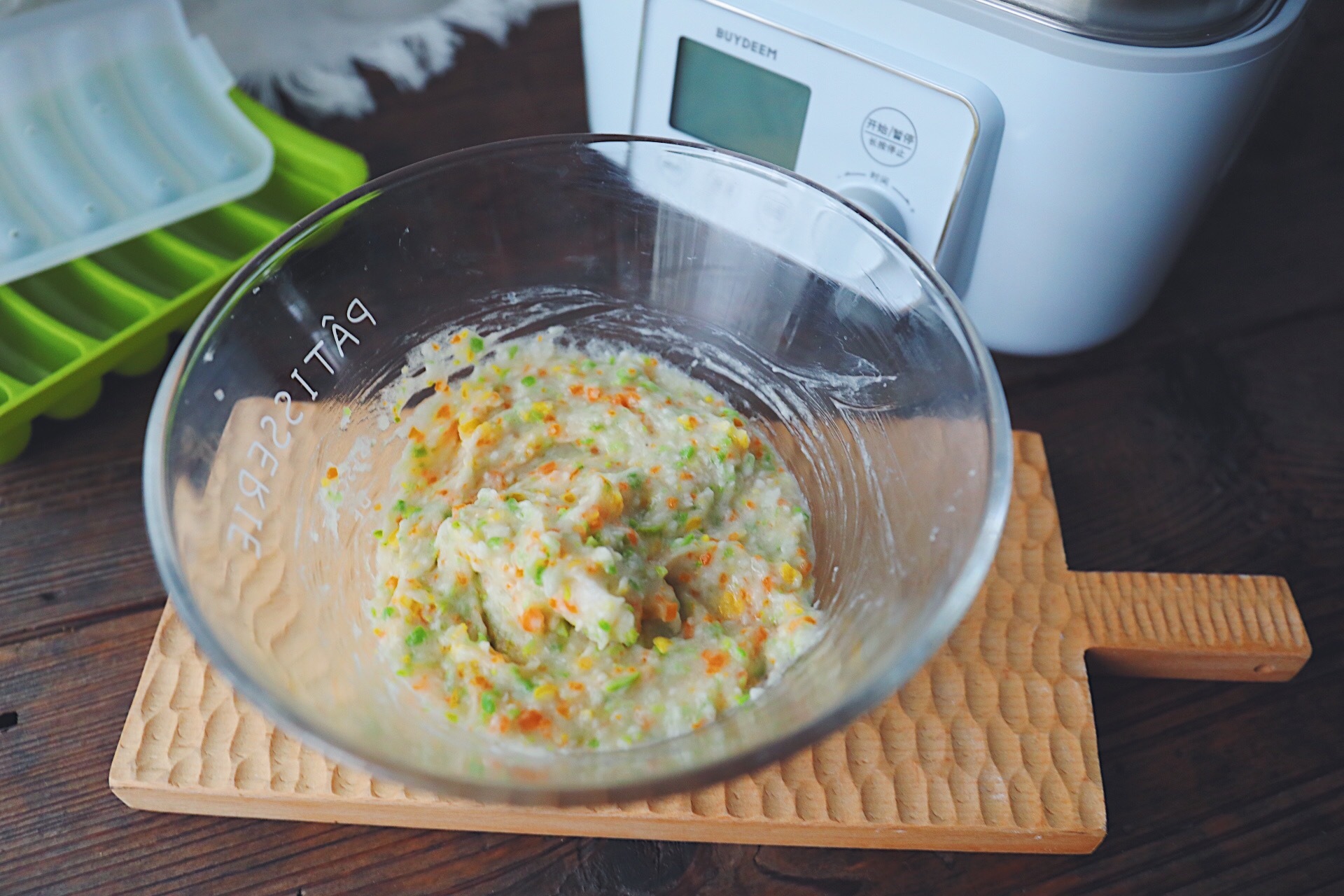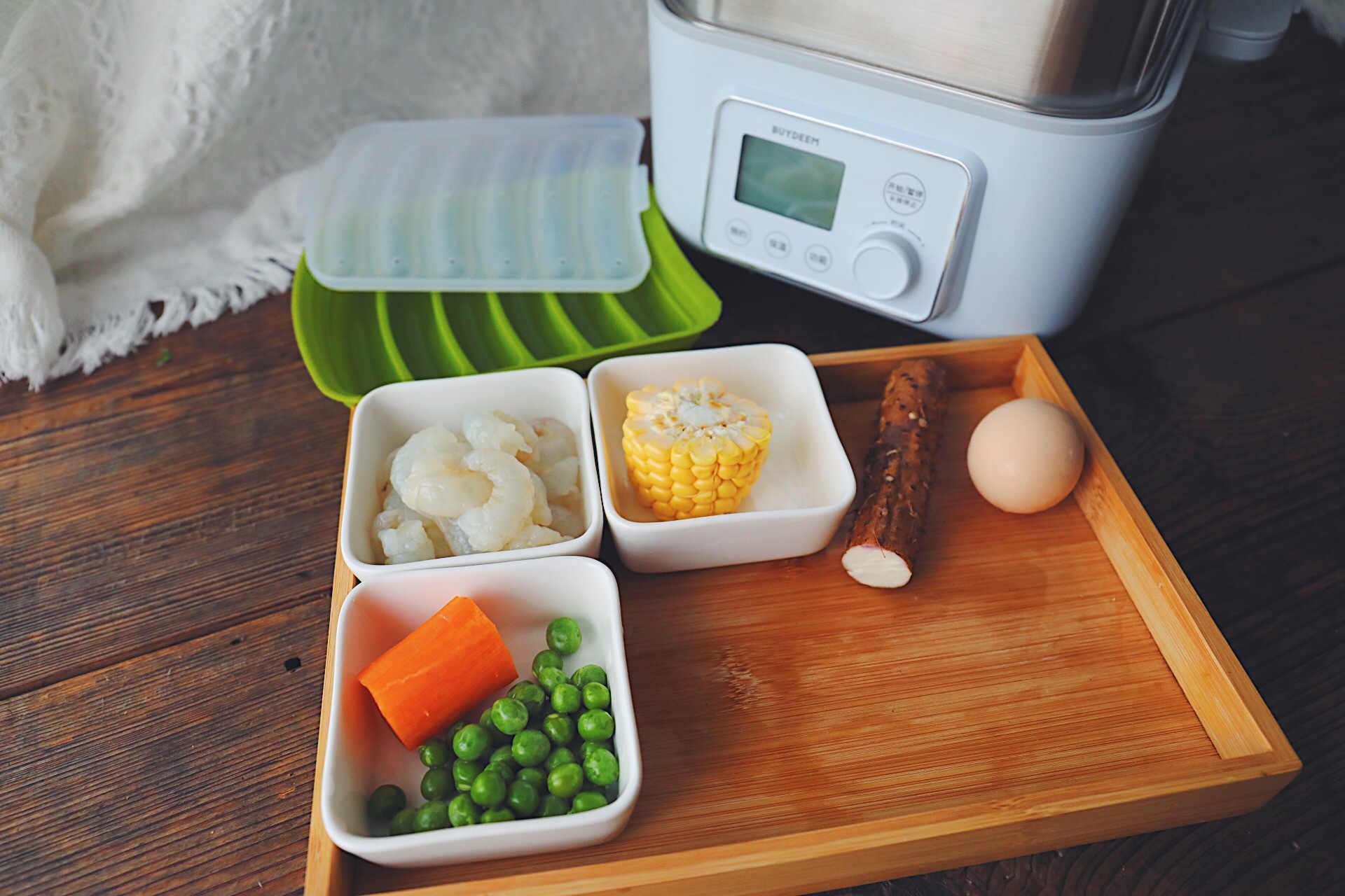 2.胡萝卜、玉米、青豆分别焯水切碎。保留颗粒可以锻炼宝宝的咀嚼能力,颗粒大小请根据宝宝的月龄和适应程度。